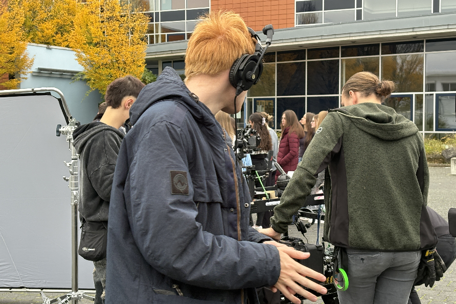 Vor dem Dreh gab Regisseur und Produzent Nico Drago seiner Crew eine Fürhung am Set der Merianschule.