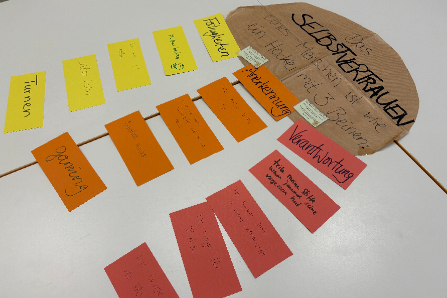 Während der Lions-Quest-Stunde zum „Hocker des Selbstvertrauens“ lernten die Schülerinnen und Schüler der 6. Klasse, was Teamarbeit, gegenseitige Anerkennung und Verantwortung bedeuten.